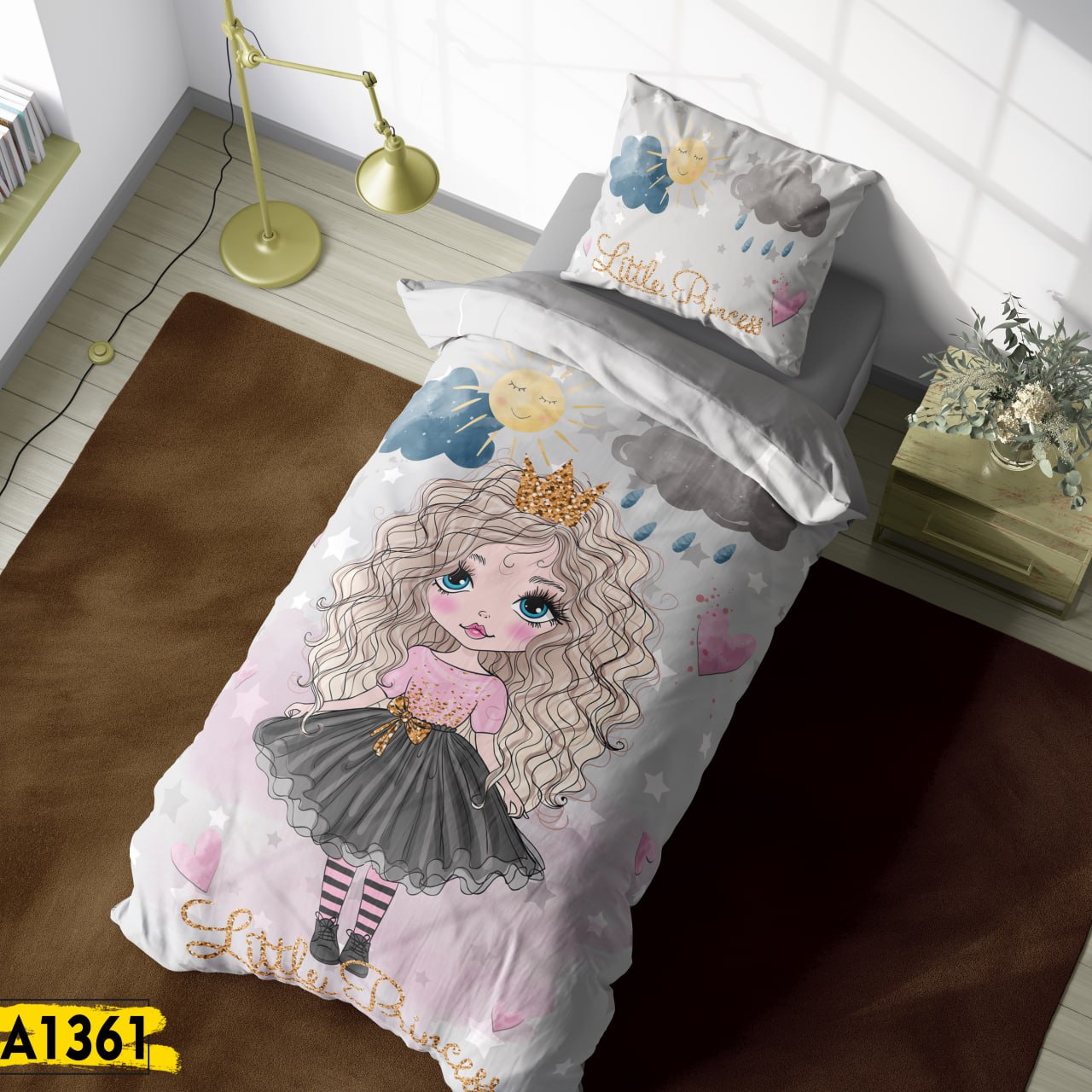 روتختی یک نفره + پرده جنس های میکرو مدل دختر مو فرفری